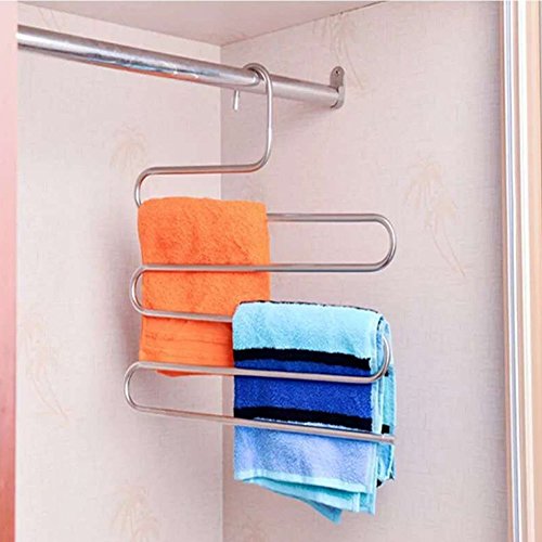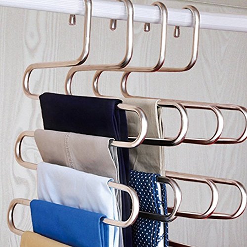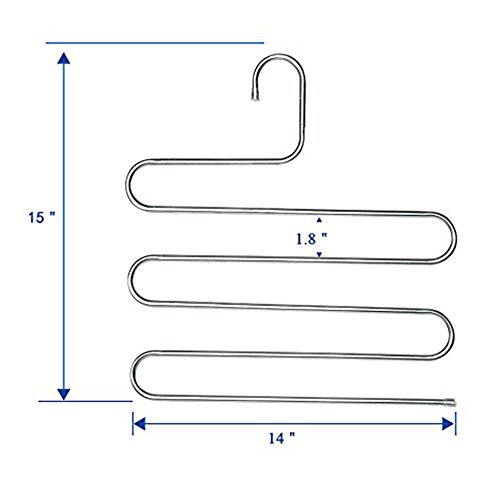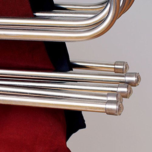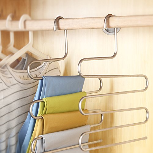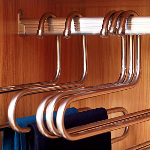 -. Feature : Closet Storage: Each hanger can be hanged for 5 Jeans/trousers at same time. Keep pants and clothes be organized on the neat and tidy. / Anti-Scratch: Soft non-slip cap on hanger, protect clothes from scratching and eliminates creases. / Space Saver: There are 5 layers for each rack, save the space in your closet that offer you more space to storage some other things. / Durable: The hangers are made of Stainless Steel which makes the pants hanger good quality with high hardness and intensity that can be used for a long time, the pants rack will never rust, always keep shinning like new. / S Type Shape: Smooth and delicate surface with no sharp edges, elegant and lightweight. Compatible with all kinds of clothes, keep your wardrobe clean and orderly.