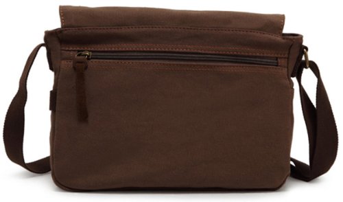 -. Feature : Soft material,100% cotton,thick garment washed canvas / Genuine leather decoration,brass hardware. / Sufficient use of multiple pockets,well organized your stuff / Style: Messenger Bag,Travel Satchel,Leisure Bag / Overall dimension: Approx.11.80"L x 8.7"H x 3" W