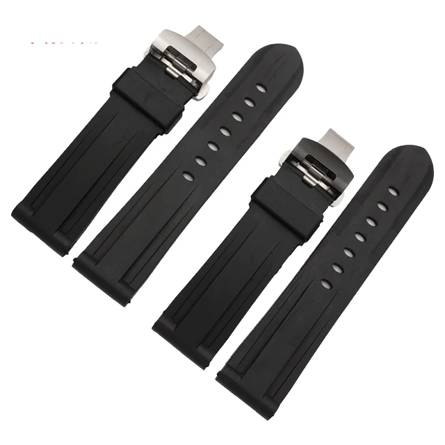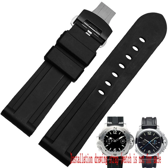 | [해외]남성 24 미리메터 부드러운 자연 실리콘 고무 시계 줄 블랙 butterfly 버클 파네 pam111 pam00112 pam389 남성 시계 스트랩 + 도구 |