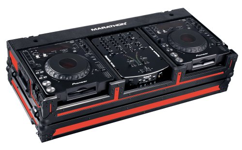 -. Title : Marathon Flight Road Case MA-DJCD10WBLKRED Red - Black Series - Coffin Holds 2 X Large Format CD Players, Mixer with Low Profile Wheels