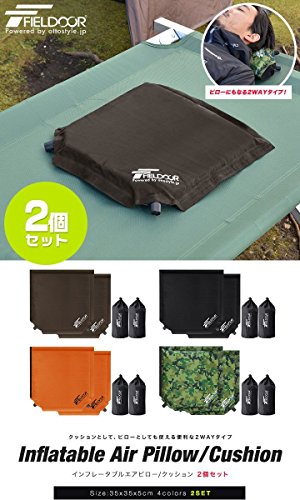 원본상품명: 【2個セット】FIELDOOR 枕にも座布?にもなる インフレ?タブルエアピロ?クッション ブラック 【?納簡?ポ?チ付】 幅35cm×厚み5cm まくら 旅行用 防災グッズ 飛行機 ドライブ 夜行