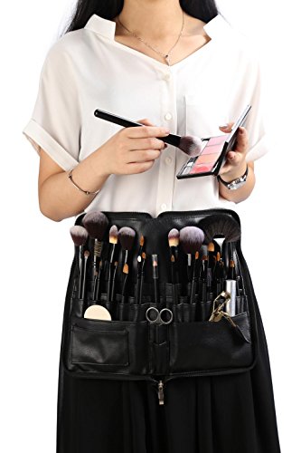 LOUISE MAELYS PU Leather Zipper Apron Cosmetic Bag Makeup Artist Organizer with Holder Belt