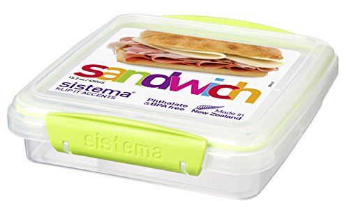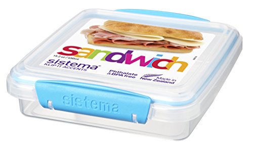 Sistema Klip It Accents Collection Sandwich Box Food Storage Container, 15.2 Ounce/ 1.9 Cup, Assorted Colors
