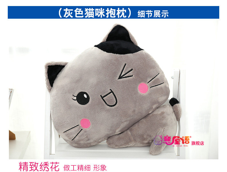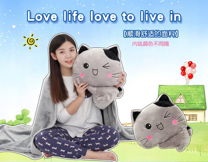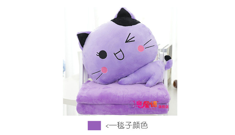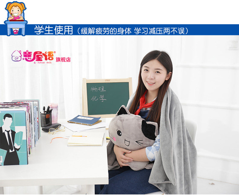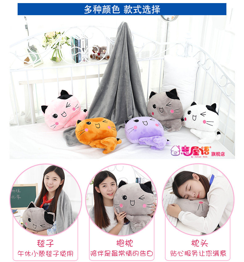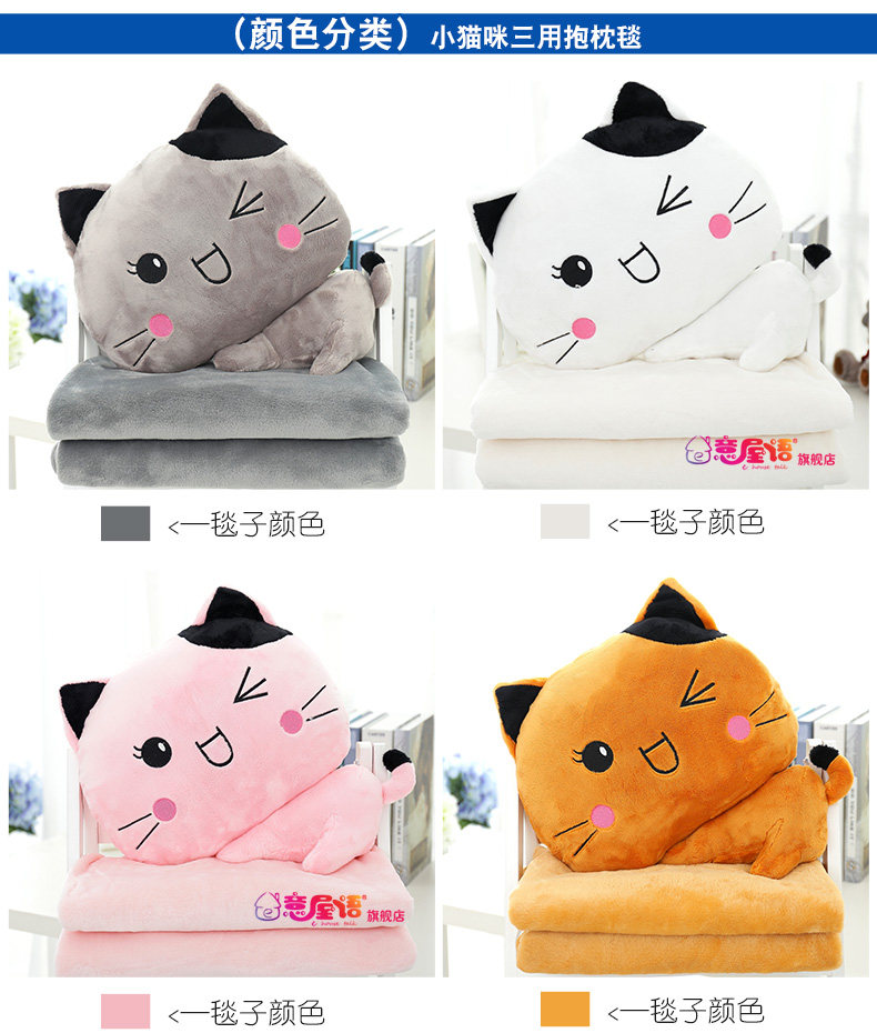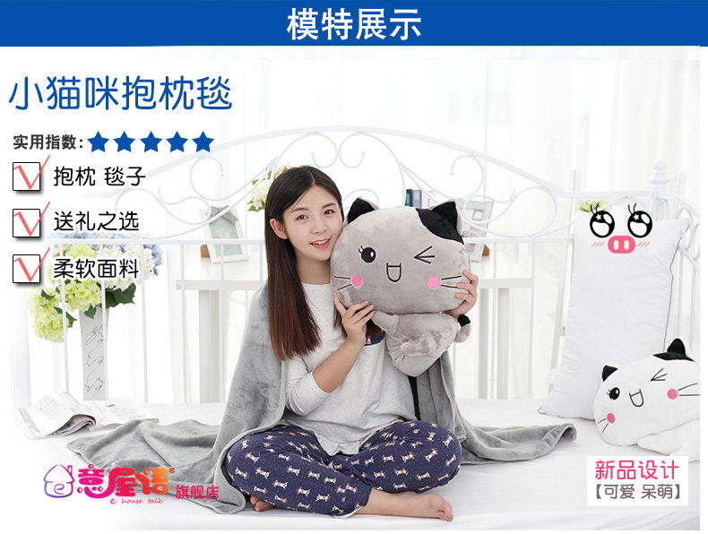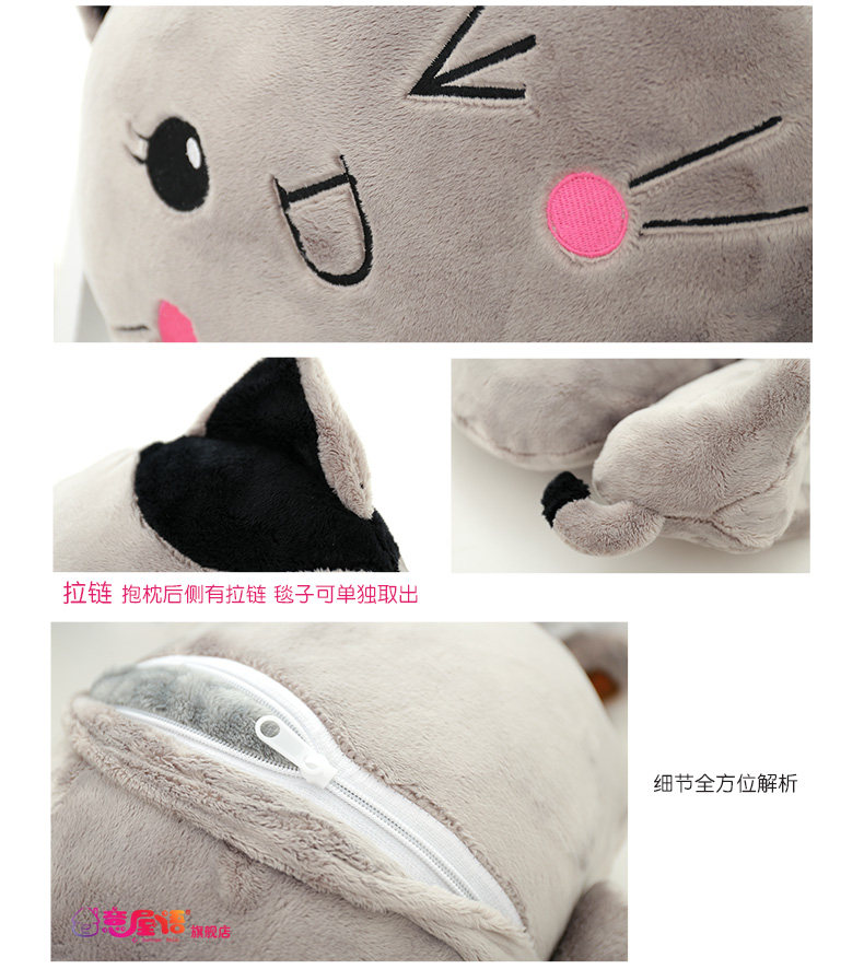 󰄬逗仔猫午睡枕头办公室抱枕被子两用靠垫被珊瑚绒汽车空调被靠枕毯