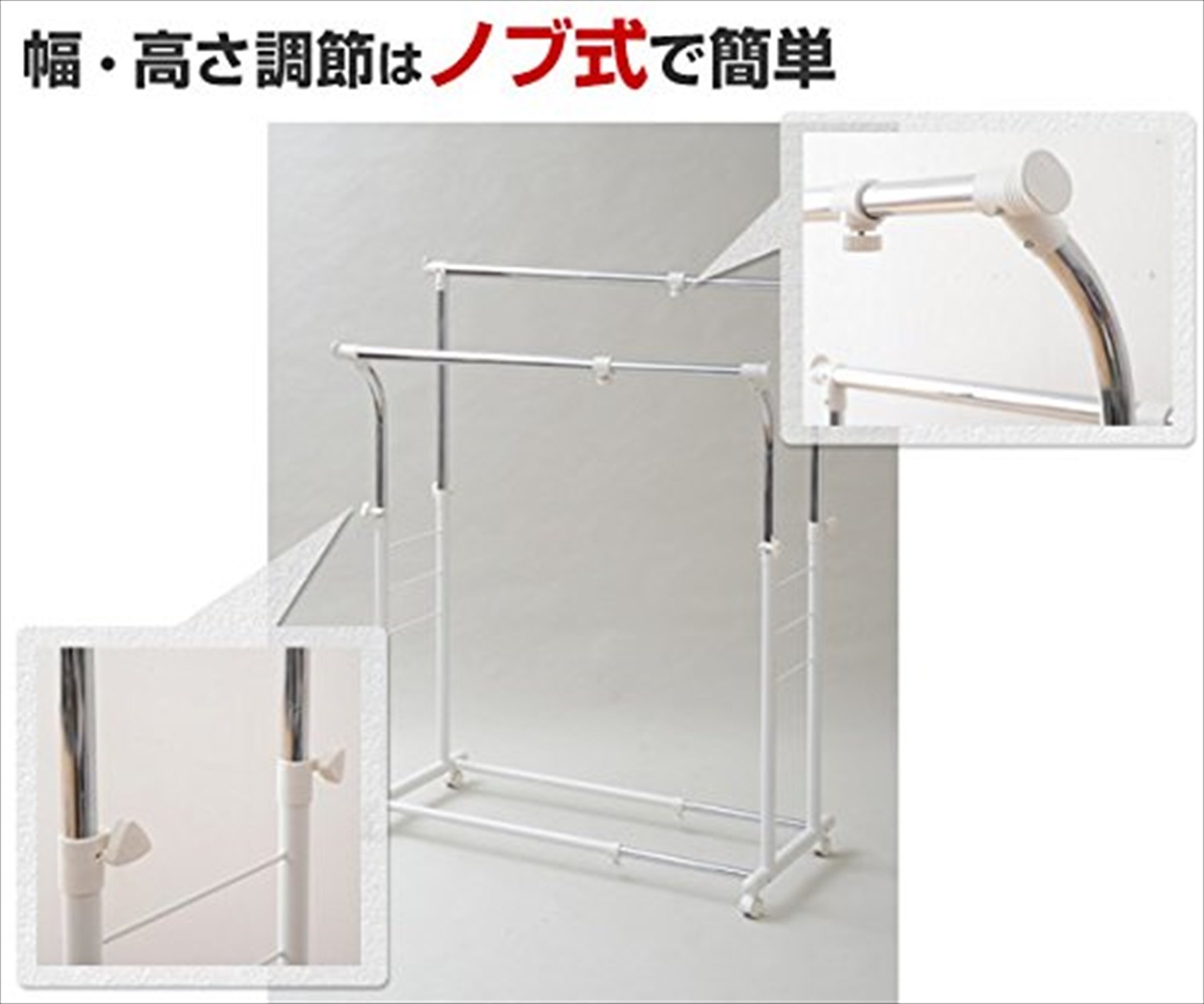 ● Assembly time ● Assembly time: Approx 20 - 30 minutes ● Shrink and extend even vertically and horizontally, size adjustable hanger rack ● 2 rows in front and back with one car space, two rows of curved type that is hard to interfere ●