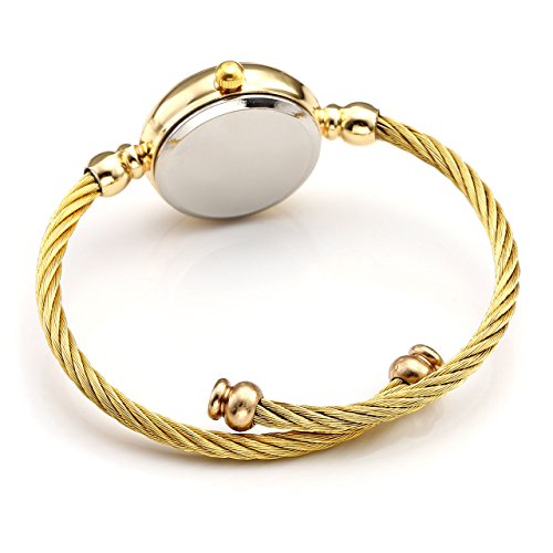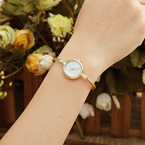 Brand, Seller, or Collection Name:Top Plaza Model number:ATPUS67925 Part Number:ATPUS67925 Item Shape:Round Display Type:Analog Clasp:Bangle Case material:alloy Case diameter:23 millimeters Case Thickness:3 Band Material:Stainless steel Band length:Women's Standard Band width:3 millimeters Band Color:Gold Dial color:White Special features:na Movement:Analog quartz