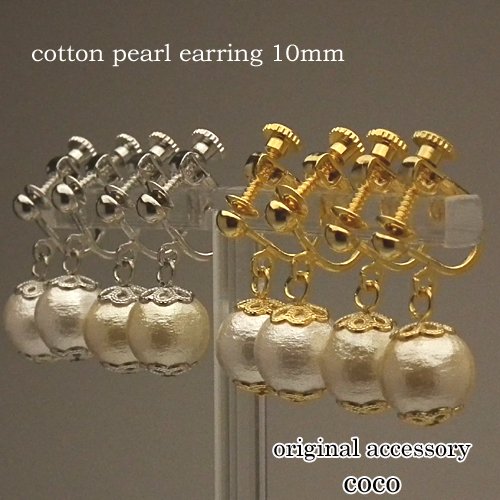 -. Title : コットンパール イヤリング 10mm  シンプル/ぶらさがり/レディース