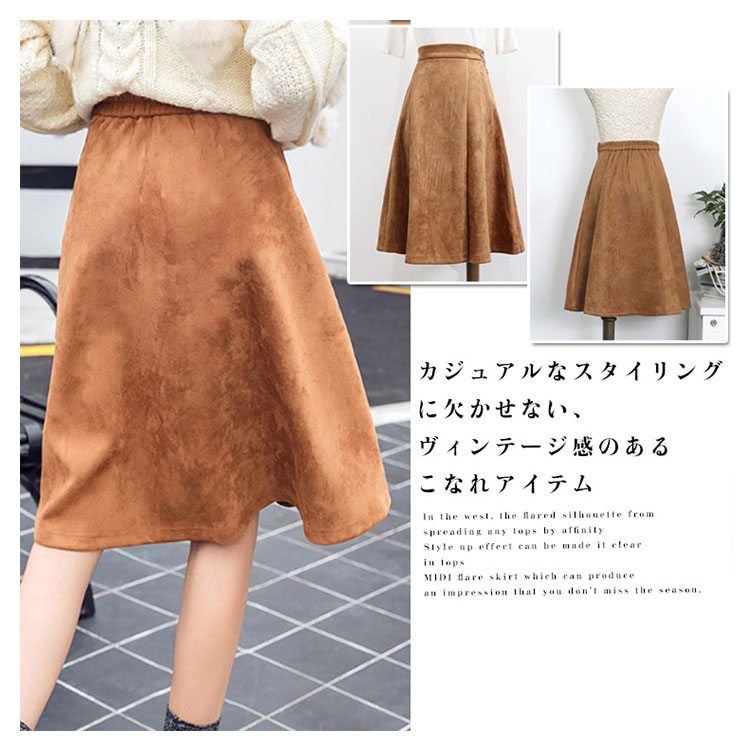 | この秋冬に注目を集めるがスエードタッチのミディアムスカートのお目見えです。しっかりとした素材で、穿くたびに生地独特のこなれた風合いに。 カジュアルなスタイリングに欠かせない、ヴィンテージ感のあるこなれアイテム。 ウエストから広がったフレアシルエットで、どんなトップスとも相性◎トップスをインすればメリハリができスタイルアップ効果も◎旬な印象を演出できるミディ丈フレアスカートをぜひ目を逃さない。 | |