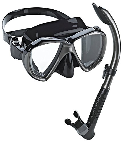 This Super Lightweight and Durable Mask is fitted with Tempered Safety Glass Lenses, is a Low Volume Mask with a Wide Field of View that is Easy-to-Clear. The Mask is equipped with a One-Hand Easy-to-Reach Nose Pocket for Ear Equalization that even works well with thick gloved hands. The Phantom Aquatics Semi Dry Flex Snorkel's Streamline Oval-Shaped Bored Tube and Lower Flex Tube combined to make this Snorkel perfect for Scuba. The Lower Section Flex Tube Automatically-Swings Out-of-the-Way when you are using your Scuba Regulator. Snorkel has a Splash-Proof Dry Guard that virtually eliminates Water Intake through the Top of the Tube. Swim through Wind and Wave Spray without interrupting you breathing. If any Water enters the Snorkel Tube it can easily be Blown-Out with the Easy Purge Systems One-Way Valve with Extra-Large Self-Draining Chamber at the Bottom of the Snorkel Tube.