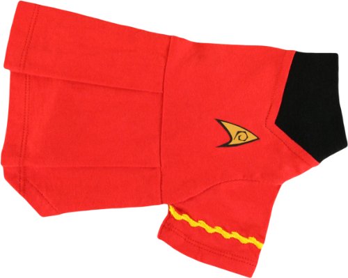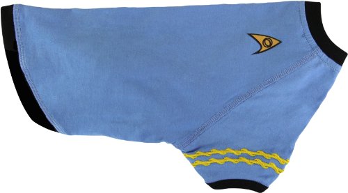 Star Trek Uniform Dog Shirt - Spock, Kirk, Uhura (Skirt), and Scottie - Outfit your Dog for the EnterpriseOutfit your dog with the latest in star trek pet fashion! These are available in multiple sizes for any dog type and available in your pet's personal rank among the enterprise crew.