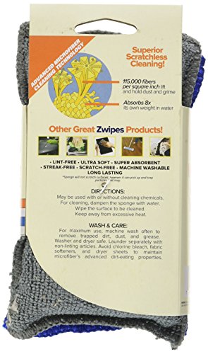 - Includes (1) blue and (1) gray 100% machine washable Zwipes Microfiber Cleaning Spong