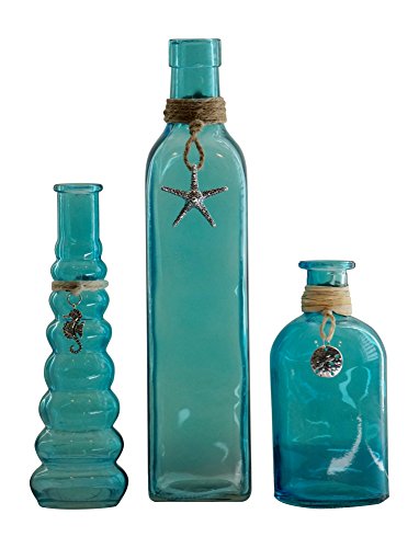 Beach Collection - Trio of Blue Glass Decorative Bottles - Coastal Decor