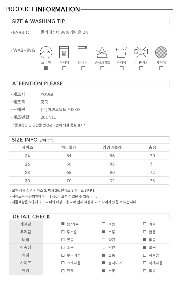 - 무릎 아래로 내려오는 롱한 길이의 체크스커트입니다.