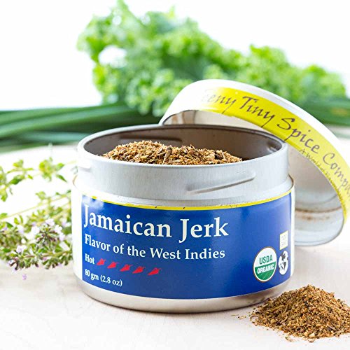 -. Binding : Misc. -. Brand : Teeny Tiny Spice Co. of Vermont -. EAN : 0859508002234 -. Feature : An easy to use spice blend for creating wonderful Cribbean dishes or to add exotic flavor to your every day meals / USDA Certified Organic & EarthKosher Certified Kosher / Hot / 80 gm (2.8 oz) of spice blend in a reusable screw top tin / Freshly blended, ground and packaged by a small, family operated business -. IsAdultProduct : 0 -. Label : Teeny Tiny Spice Company -. Manufacturer : Teeny Tiny Spice Company -. NumberOfItems : 1 -. PackageQuantity : 1 -. ProductGroup : Grocery -. ProductTypeName : GROCERY -. Publisher : Teeny Tiny Spice Company -. Size : 2.8 -. Studio : Teeny Tiny Spice Company -. Title : Teeny Tiny Spice Co of Vermont Organic Jamaican Jerk, 2.8 Oz -. UPC : 859508002234
