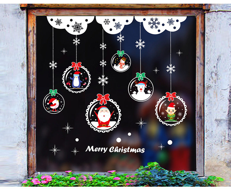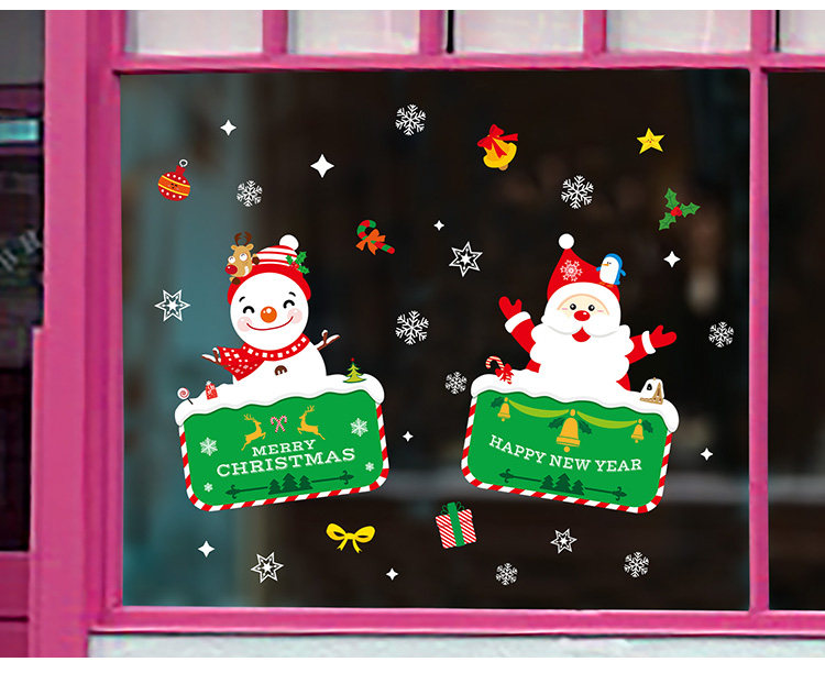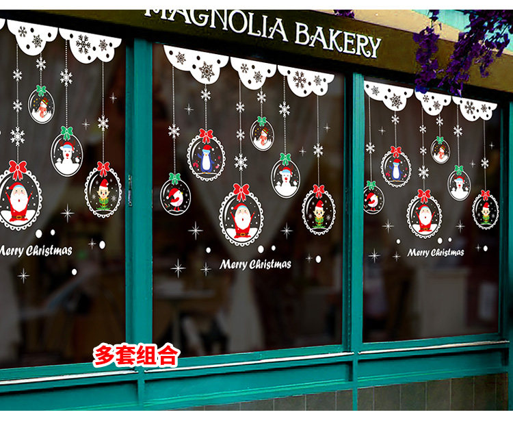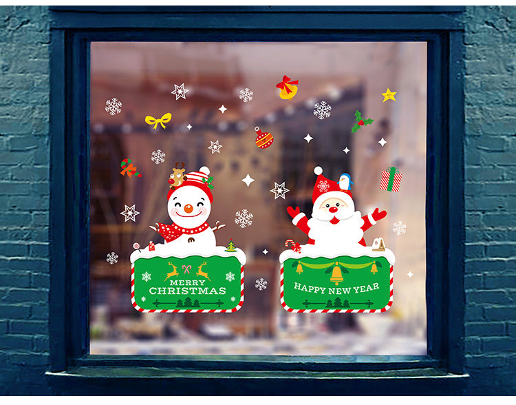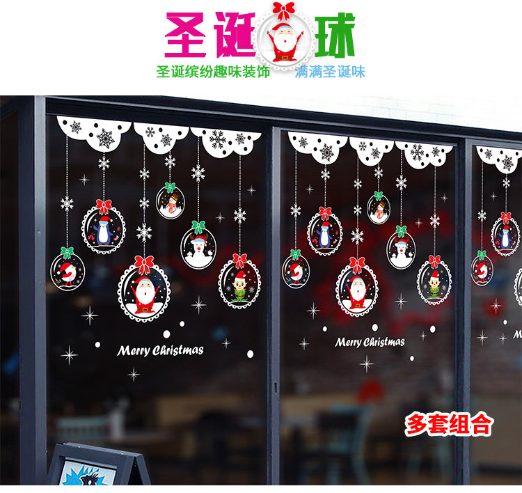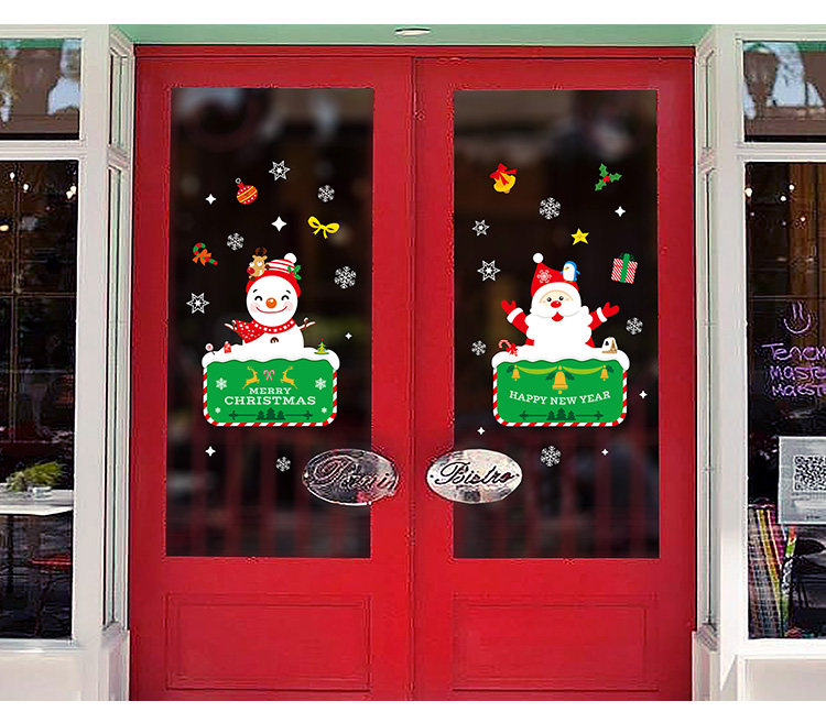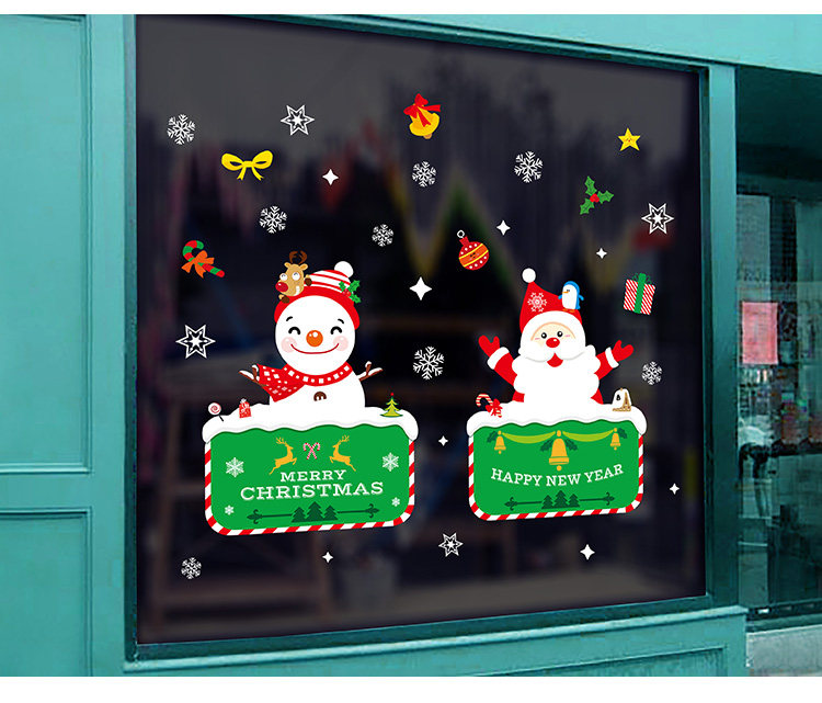 商场店铺圣诞节装饰品橱窗贴玻璃贴纸墙贴画雪花圣诞老人门贴