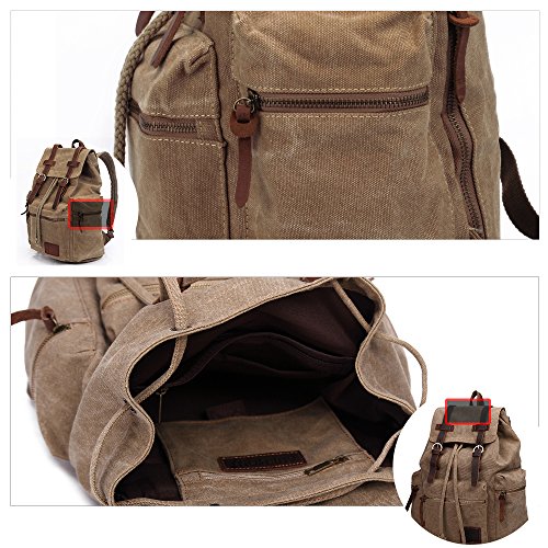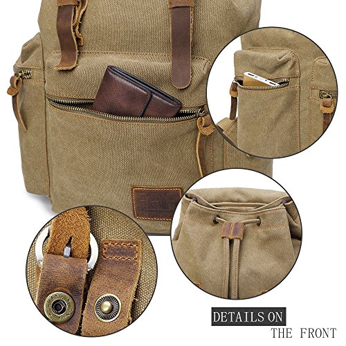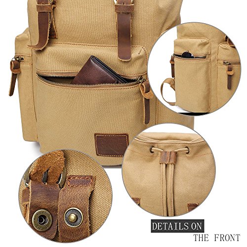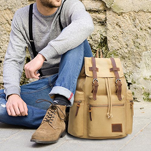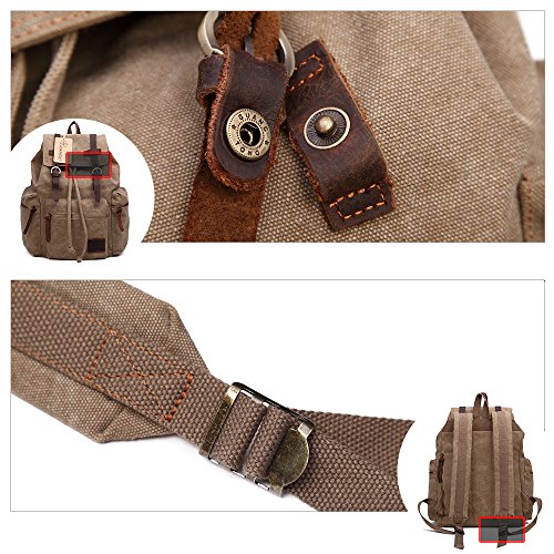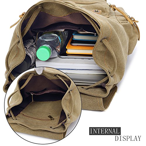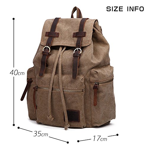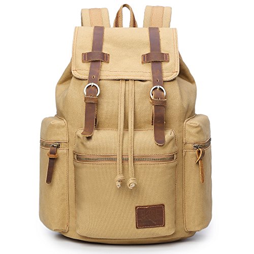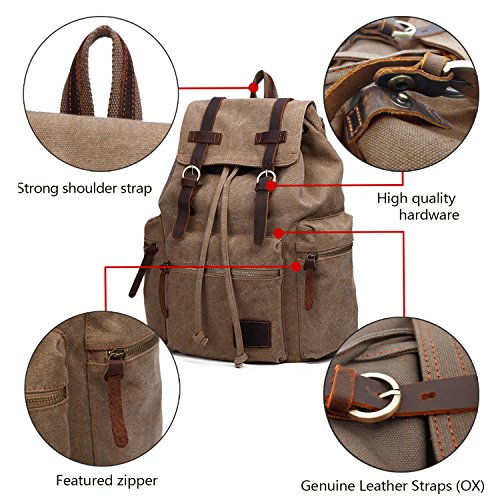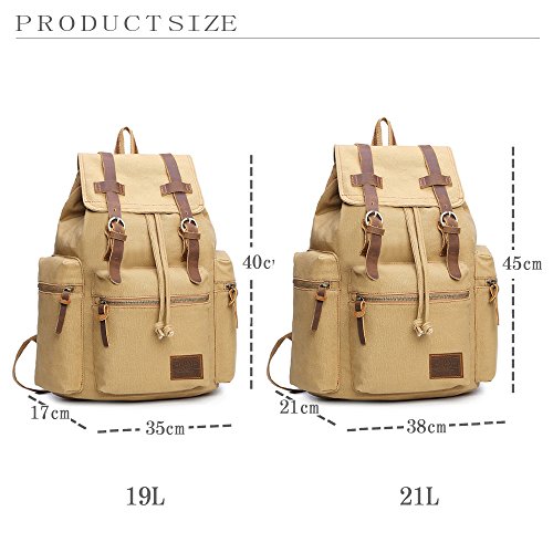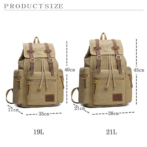 Canvas Backpacks Vintage Rucksack Casual Leather Army Kipling Knapsack 21L