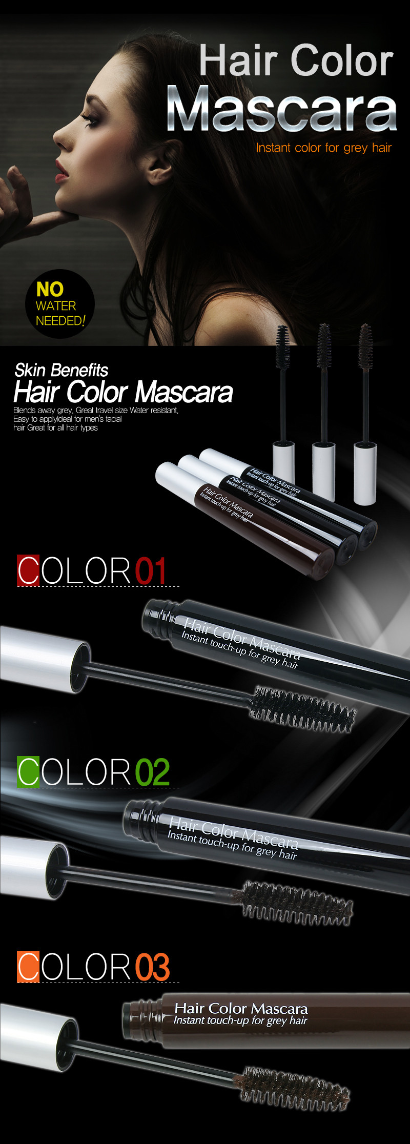 Skin Benefits Hair Color Maskara Instant Color For grey Hair 7g Korea (BLACK,DARK BROWN,BROWN)