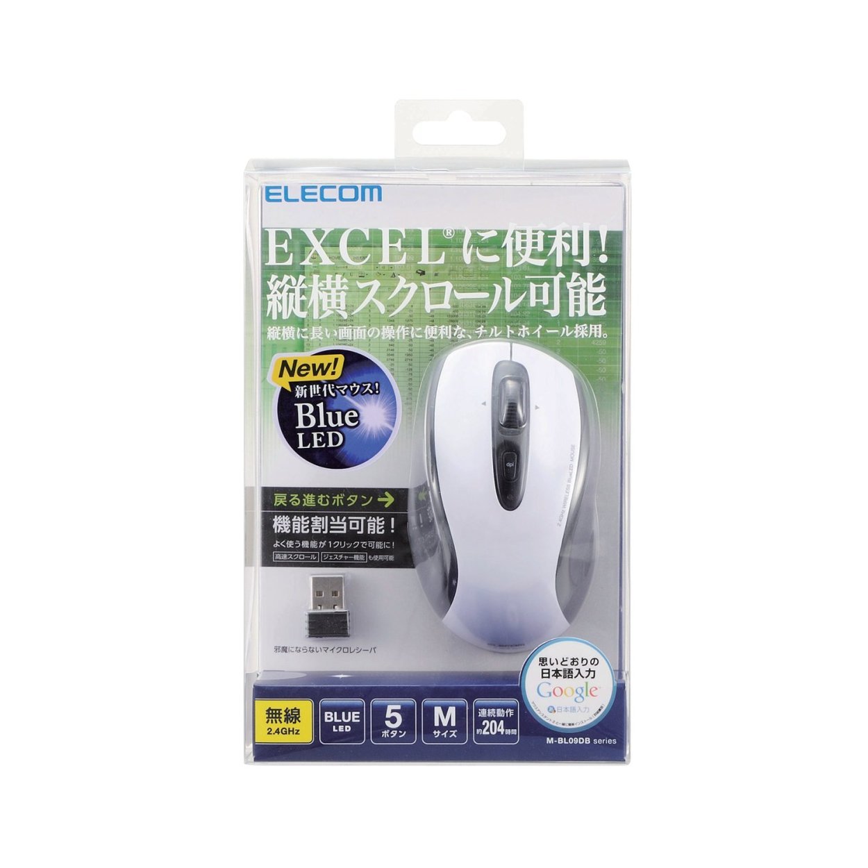 A tilt wheel that allows side scrolling just by tilting the wheel! BlueLED mouse equipped with 5 buttons that can be assigned to frequently used functions.