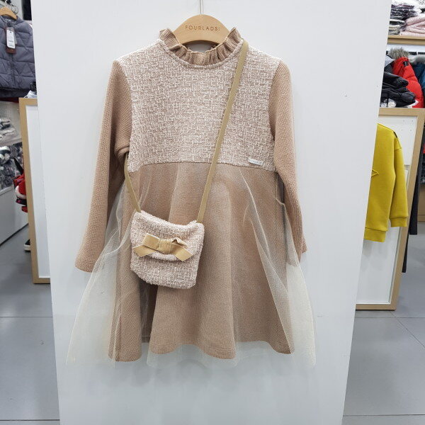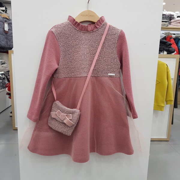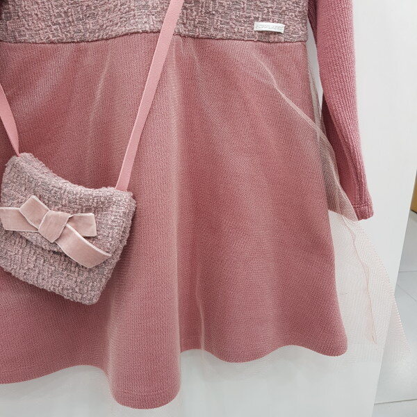귀여운 가방이 포인트인 니트 조직소재입니다. 넥부분 프릴이 살짝 목을감싸주어 귀여운 느낌이면서도 톡톡한소재감과 컬러감이 고급스럽고 벨벳리본장식이 달린 가방으로 실용성까지높여 주었어요공주님같은 느낌으로 아이들이 정말좋아할 원피스랍니다