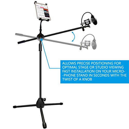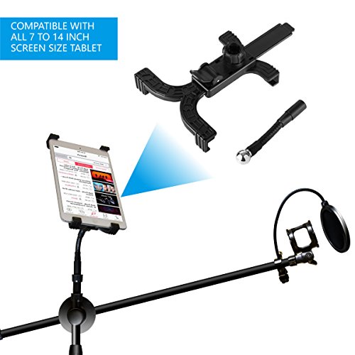 -. Feature : KIT INCLUDES-Tripod Floor Stand with Boom + Adjustable Tablet Holder + Pop Filter + Shock Mount Holder + Spiral Tube. / SUPERIOR QUALITY MATERIALS AND DURABLE CONSTRUCTION- Our tablet and microphone stands are manufactured with superior grade materials and modern production techniques, it's guaranteed to accompany you on every musical session for years. Our tablet and microphone stand will be go-to equipment for every recording session or live performance / ADJUSTABLE TRIPOD FLOOR STAND-30"-51.6"/77cm-131cm height adjustable tripod floor stand with tablet holder. Great tool to hold your ipad or other tablets while singing or speaking. / BUILT WITH STRONG METAL TUBES AND POP FILTER- Tripod base with rubber end caps for excellent sturdiness and anti-vibration. Comes with 24.78"/ long arm, pop filter and microphone shock mount holder of 1.7" diameter protect your microphone from surplus Saliva caused by over eager performers. / SUITABLE FOR MOST TABLETS- Fashion Professional Easy-Adjust 2-in-1 Tablet and Microphone Stand suits for all 7-14 inch tablets such as IPAD 2/3/4, IPAD Mini 1/2/3/4, IPAD AIR, Kindle, Nexus, Samsung, Androids, etc.