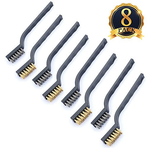 SUBANG 8 Packs Wire Brush for Cleaning Welding Slag and Rust, Stainless Steel and Brass