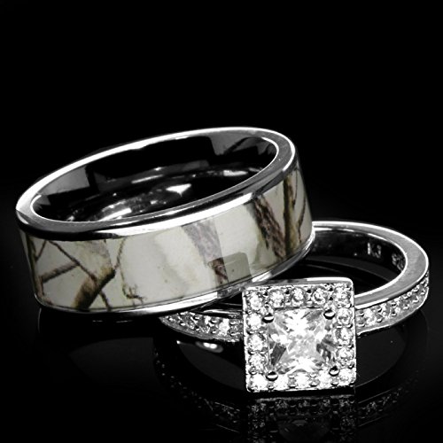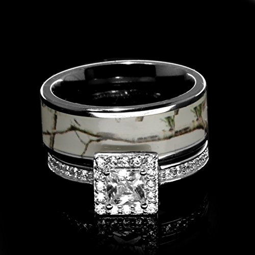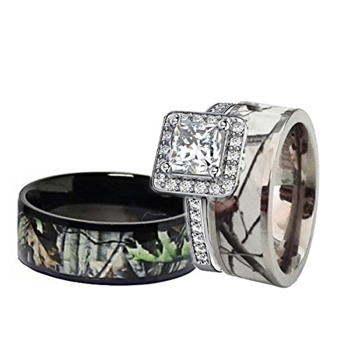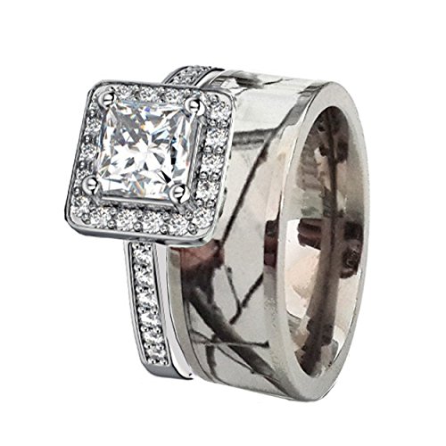 -. Feature : Camo ring set / Camo bands - titanium / Engagement ring - sterling silver / High quality synthetic cubic zirconia / FREE High Quality Jewelry Box