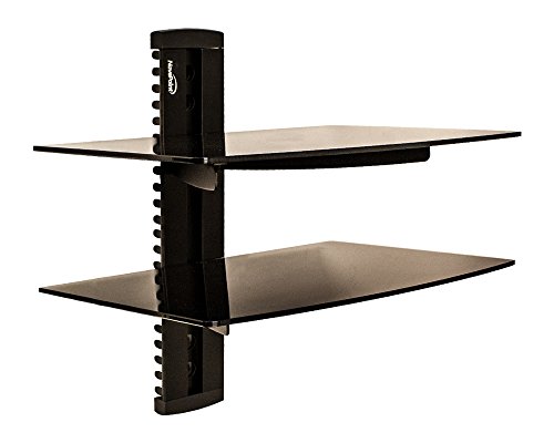 -. Title : NavePoint Wall Mount Bracket Dual Medium Glass Floating Shelf For DVD DVR VCR Cable Box Receiver Component Mounting Under LCD TV