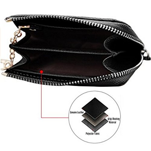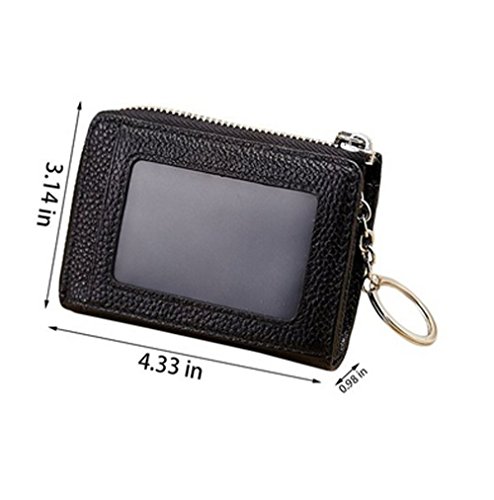 -. Feature : Premium Material: Durable Cowhide leather construction makes it Scratch Resistant & Wonderful Touching / Measures: 4.33 x 3.14 x 0.98 inches / Compact zipper wallet case with 2 large compartments + 2 card slots for cash, coins, changes and many credit cards + 1 ID window outside / A specially designed Removable key ring chain for car keys, house keys and hanging on the pant, very convenient carrying / Durable & gliding zipper with elegant nylon stitching , no break lines, elegant model, very prime!
