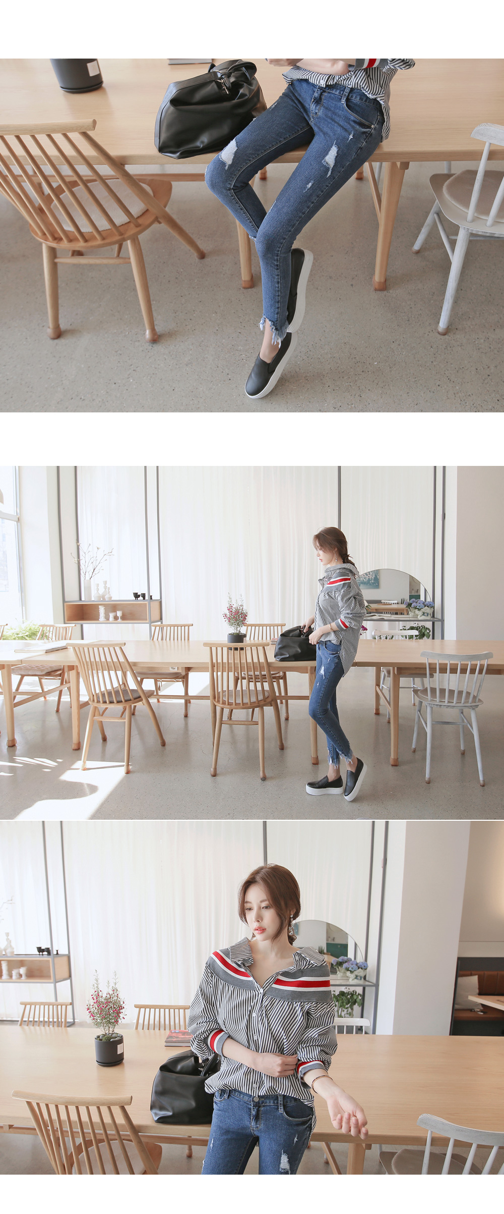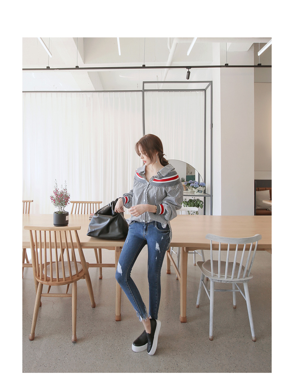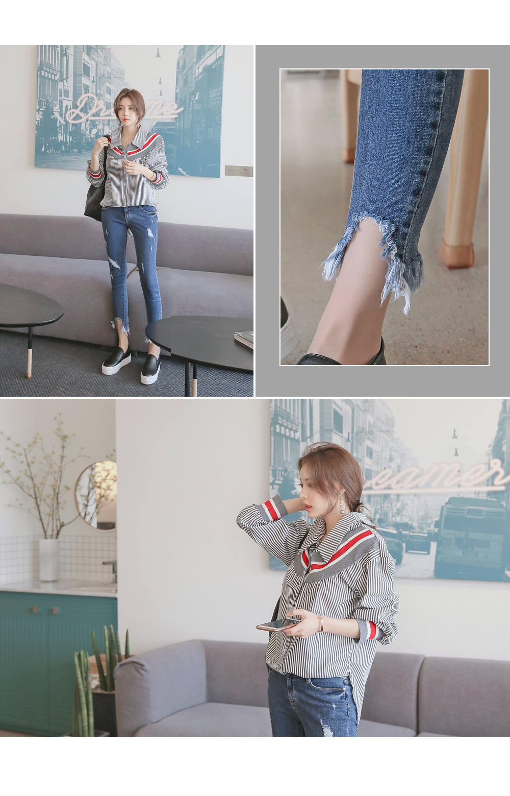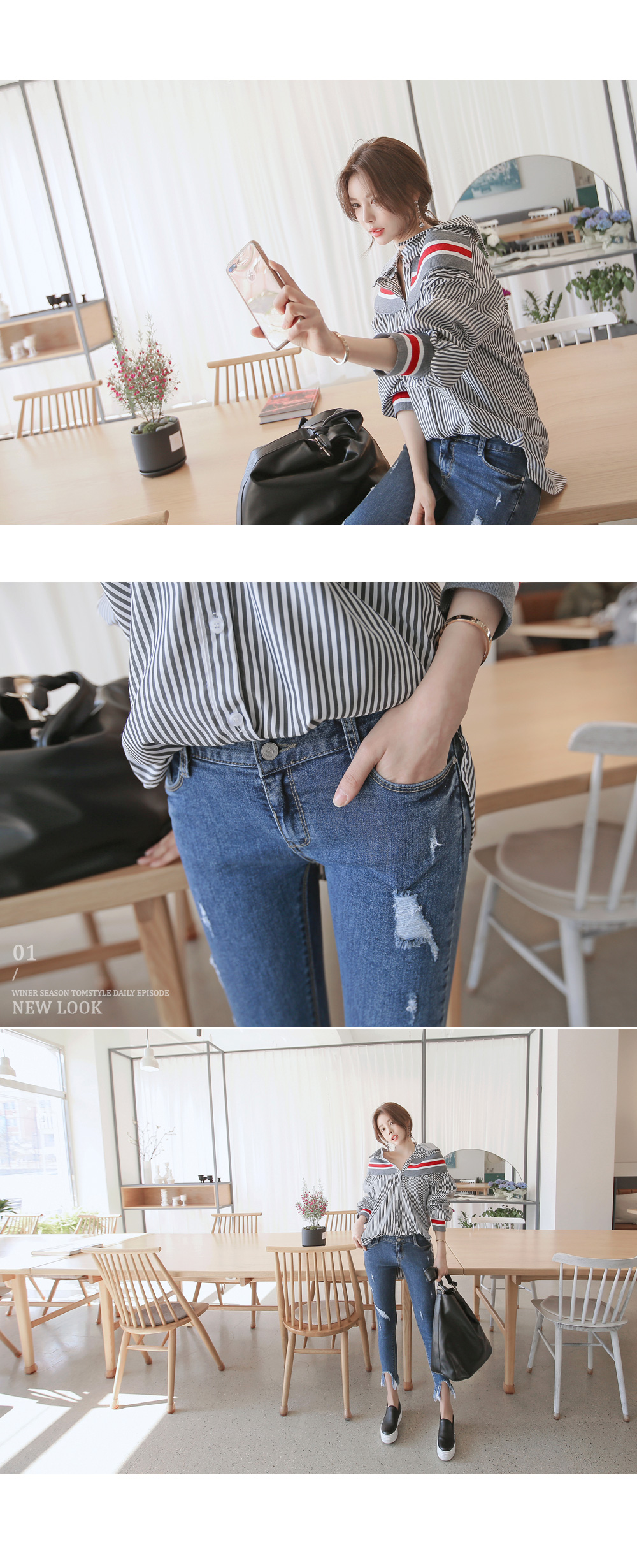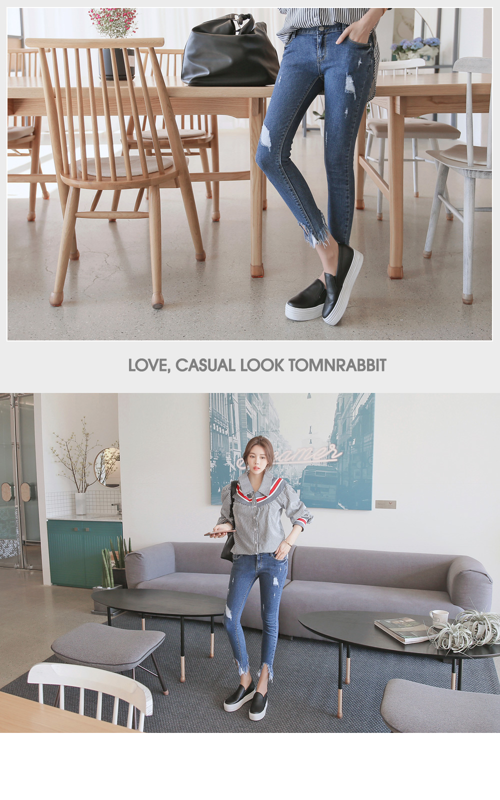 빈티지한 헤짐 디테일의 스키니진을 소개합니다.