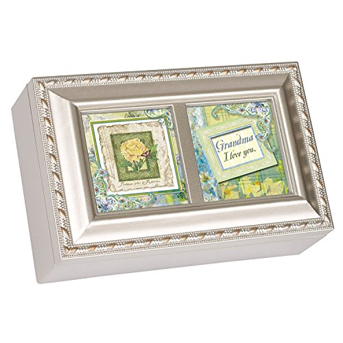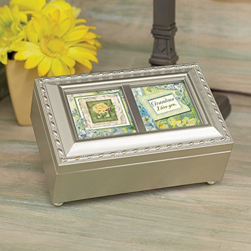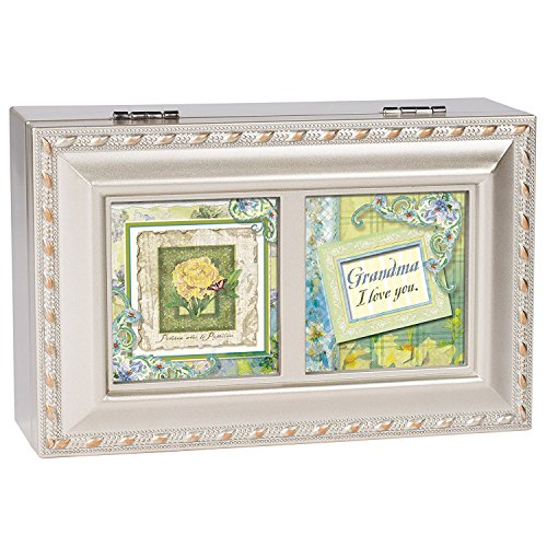 Grandma I Love You Champagne Silver Cottage Garden Petite Music Box Plays Light Up My Life