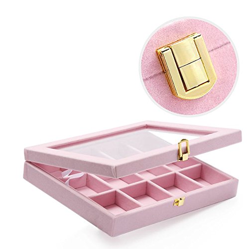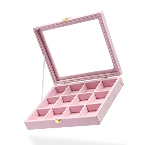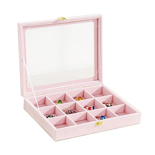 Aco&bebe House Pink Jewelry Box Organizer - Small Gadgets Organizer - Rings Holder Jewelries Storage Case (Pink- 12 Grits)