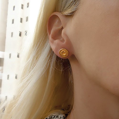 -. Title : 12mm Yellow Gold Plated Round Silver Stud Earrings For Women Coin Disc Shape Handmade Jewelry Hypoallergenic Nickel Free For Sensitive Ears Jewellery Handmade Gift
