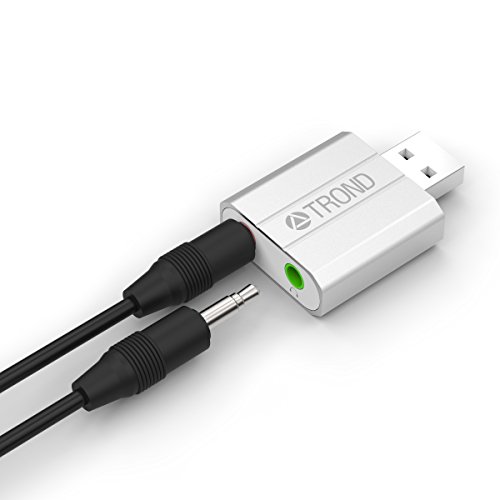 USB Sound Card, TROND® AC2 External USB Audio Adapter with 3.5mm Stereo Headphone/Speaker and Mono Microphone Jacks (Silver, C-Media HS-100 Chip, Plug-N-Play, Compatible with Windows, Mac and Linux)