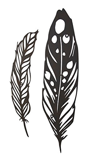 Metal Wall Sculptures 2 Piece Rustic Brown Laser Cut Metal Wall Feathers 5.75 X 19 X 0.13 Inches Brown