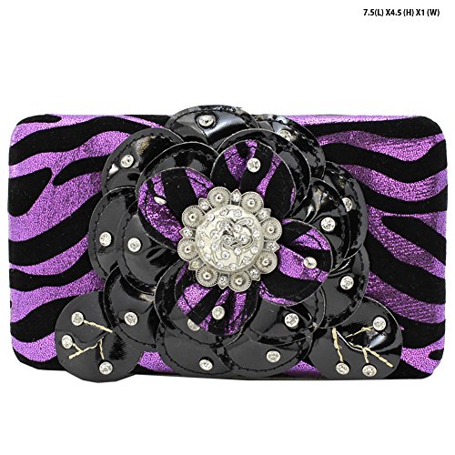 -. Title : Western Flower Zebra Women Wallet Rhinestones Metallic Purple or Pink