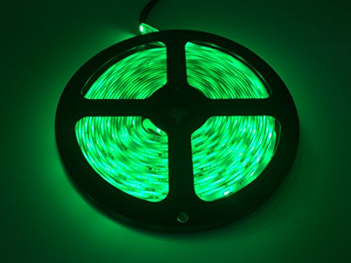FlatLED LED Light Strip, 12V 3528 SMD 16.4Ft/5M Green LED Strip Light 300LEDs Waterproof Flexible Cuttable (No Power Supply)
