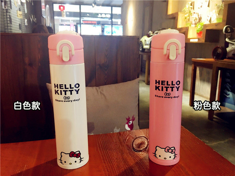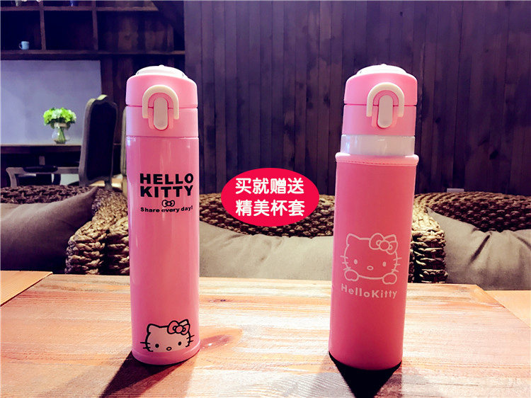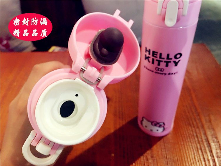 卡通hellokitty不锈钢保温杯便携带盖弹跳杯可爱男女儿童直身水杯