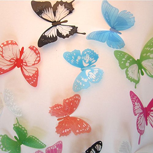 -. Title : ElecMotive 36 Pcs 3D Color Crystal Butterfly Wall Stickers with Adhesive Art Decal Satin Paper Butterflies Home DIY Decor Removable Wall Decor