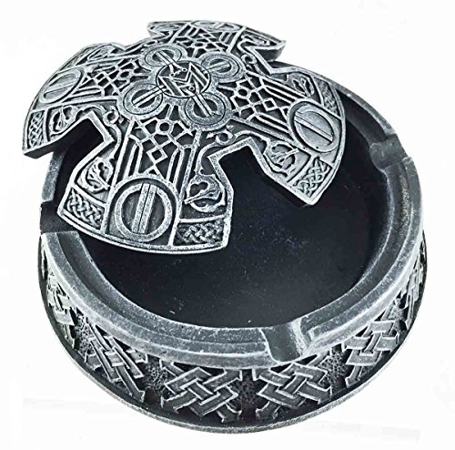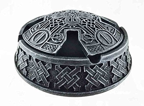 -. Title : Celtic Cross Faux Stone Knotwork Round Cigarette Ashtray With Lid Figurine