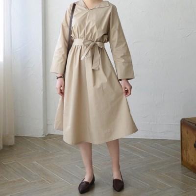 페미닌 리본 플레어원피스 베이직 하면서도 내추럴한 무드의 페미닌한 원피스를 소개해드릴게요 전체적으로 낙낙한 품으로 사이즈에 구애받지 않고 누구나 부담없이 즐기기 좋은 디자인이에요 허리 또한 스무스한 밴딩으로 매우 편안하고 리본끈이 세트인 구성상품으로 웨스트라인을 더욱 예쁘고 슬림하게 강조해 드려요 브이넥 카라 네크라인으로 쇄골이 가볍게 드러나 가녀린 느낌을 더하며 볼륨감 있는 실루엣과 무릎 아래로 내려오는 롱한 길이감으로 여성스러움을 더해주었어요 매끈한 터치감과 적당한 두께감으로 한겨울을 제외한 3계절 내내 즐기실 수 있으며 안감이 없지만 그만큼 가볍게 착용 가능하고 비침 또한 없기 때문에 안정감을 드려요 / beige