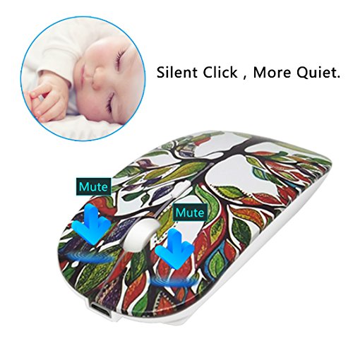 Azmall 2.4GHz Rechargeable Wireless Mouse Silent Click with Nano USB Receiver - Portable Quiet Mice for Macbook,Notebook,Laptop,PC,Tablet - Lucky Tree