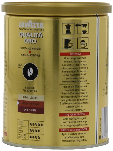 Lavazza Qualita Oro Medium Roast Ground Coffee, 8.8-Ounce Cans (Pack of 4)