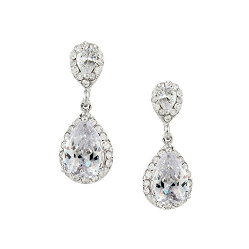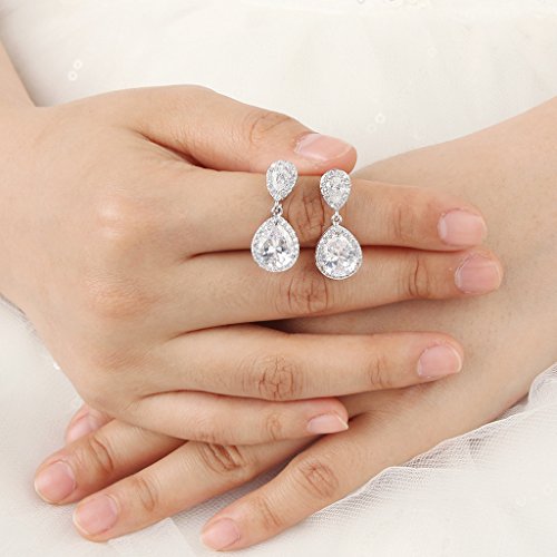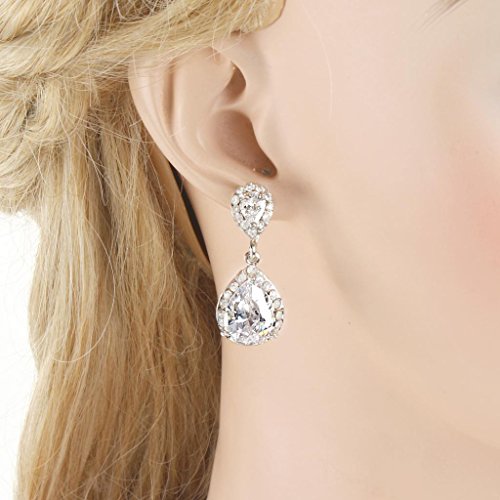 -. Title : EVER FAITH® Bridal Tear Drop Dangle Earrings Clear Zircon Crystal Silver-Tone