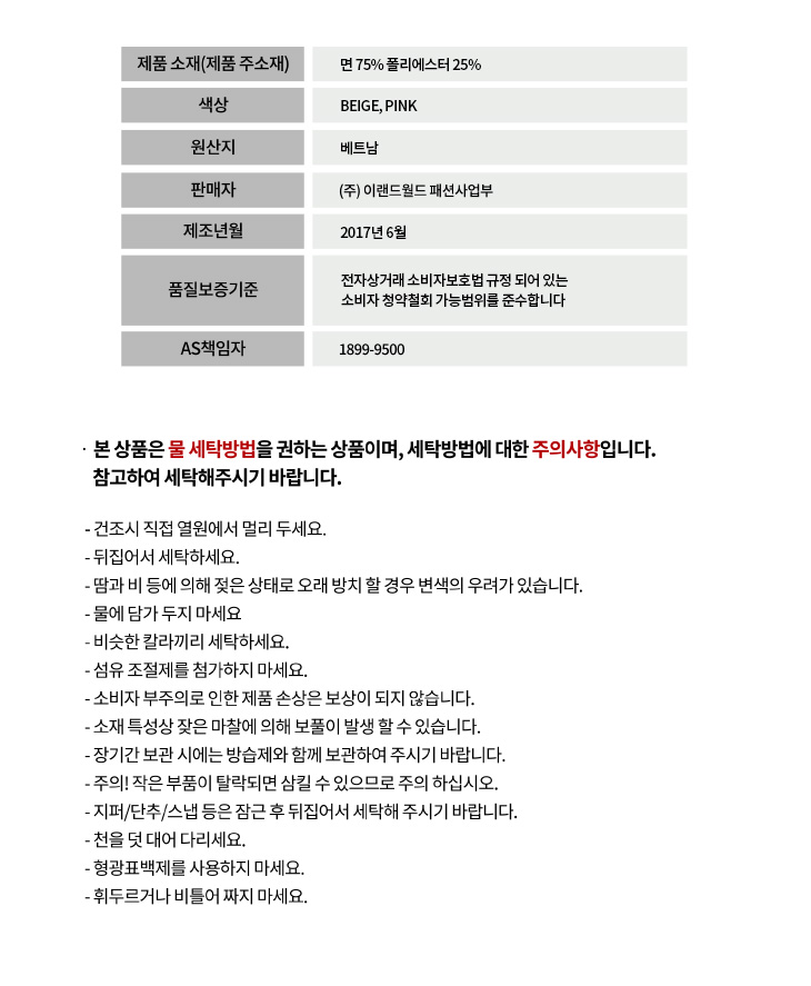 상품 실측 사이즈