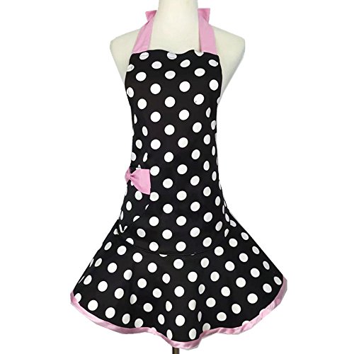 Aprons For Women Plus Size,Retro Vintage Women Cute Black Apron 100% Organic Cotton Extra-long Tie Kitchen Apron for Baking Cooking Gardening 29 x 21 inch(pink)