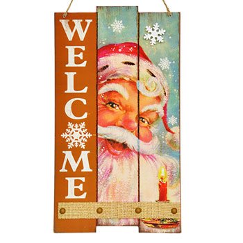 - Holiday Santa Rustic Welcome Sign Decoration with Glitter