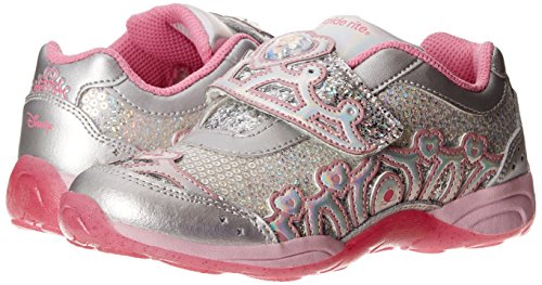 Cinderella-theme sneaker featuring sequined upper and crown-shape strap with hook-and-loop closure