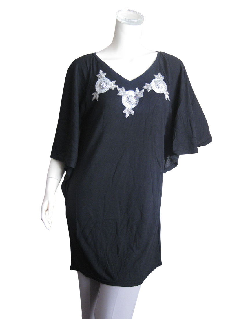 チュニック ワンピース フラワーモチーフ スパンコール ビーズ 春夏