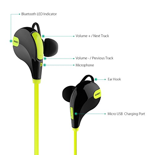 Package Content: Aukey EP-B4 best Bluetooth Headset, USB Charging Cable, 6 x Ear buds (large, medium and small), 6 x Ear hooks (large, medium and small), User manual & Aukey 24 Month worry-free warranty