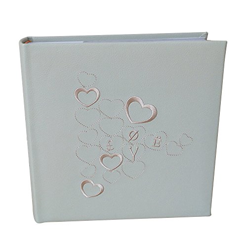 LINKEDWIN Embroidered Leatherette Photo Album with "Memo" Area, Contains 200 Pockets for 4-inch by 6-inch Photos (Light Grey)